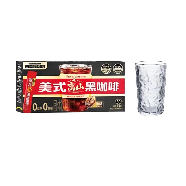 四只猫0糖0脂西梅美式黑咖啡30条+冰川杯