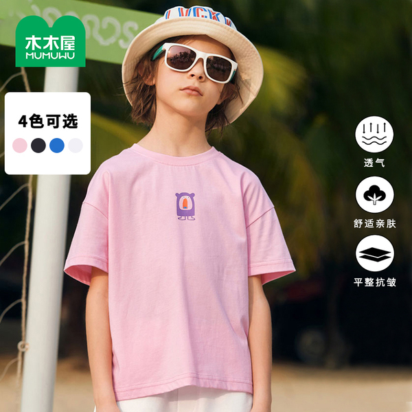 木木屋儿童短袖T纯棉休闲时尚童装中大童打底衫男童女童